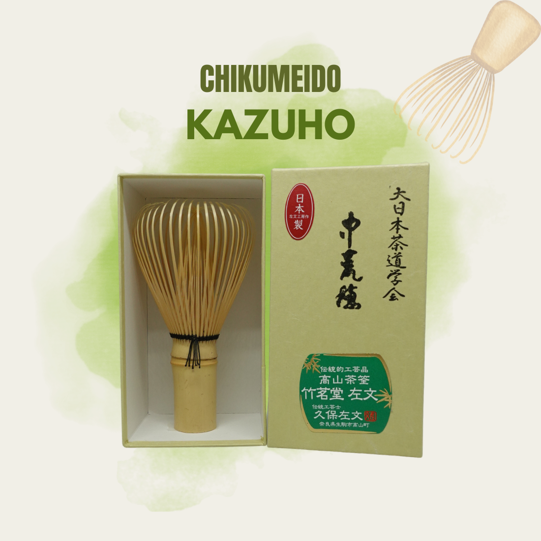 Clean Immediately After Use: Whisk the chasen in a bowl of water or rinse it under running water to remove any matcha residue. Use your fingers or a cloth to gently clean the tines. Avoid using soap, as it can damage the bamboo.